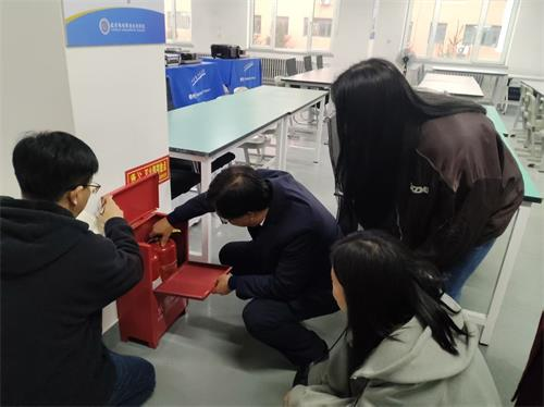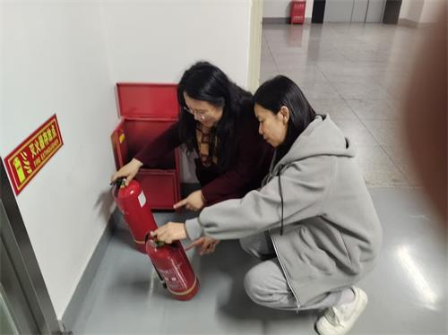 2025年11月5日中午12:30,理化测试与质检技术党支部全体党员走进N楼理化专业实训室,开展“消防护航实训”主题党日活动,对实训教学一线的消防安全进行“拉网式”体检。