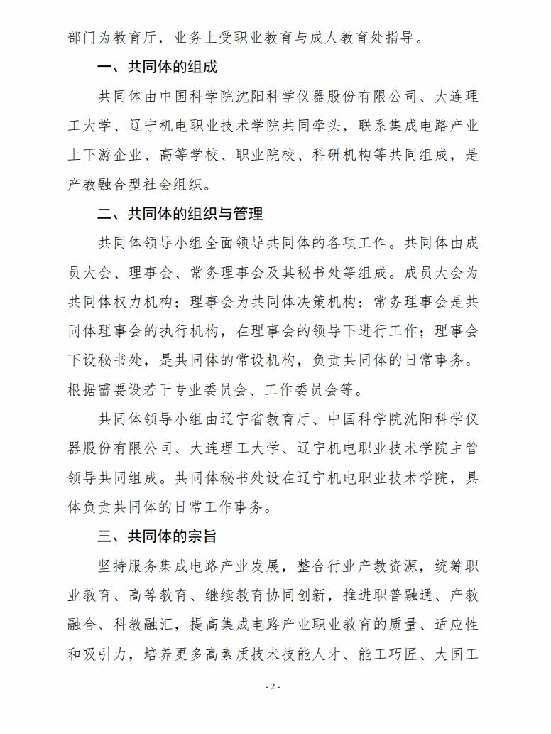 辽宁省集成电路行业产教融合共同体章程