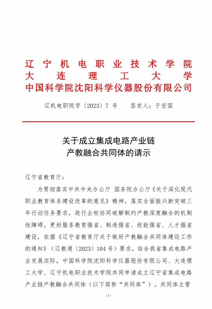 辽宁省集成电路产业链产教融合共同体成立文件
